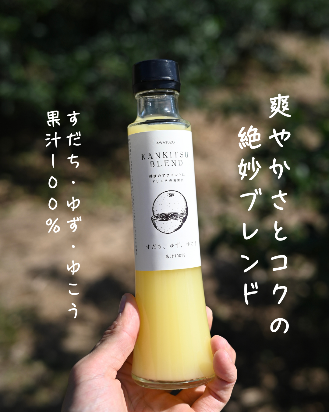 すだちのシャープな酸味、ゆずの華やかな香り、そして“幻の果実”ゆこうのまろやかなコクを一度に楽しめます。